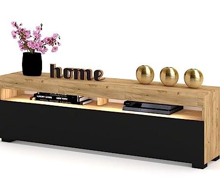 Euro Style TV-Schrank mit LED Stand Tv-Lowboard für Wohnzimmer Schlafzimmer Fernsehschrank Fernsehtisch Sideboard HiFi-Schrank Kommode 50 Zoll, Golden Eiche/Schwarz, 120cm