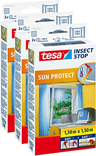 Ein besonders beliebtes Modell ist das tesa Fliegengitter für Fenster inkl. Sonnenschutz in den Maßen 1,3m x 1,5m. Dieses Fliegengitter zeichnet sich durch seine hochwertige Verarbeitung und beste tesa Qualität aus. Das Fliegengitter besteht aus einem feinmaschigen Gewebe, das zuverlässig vor Insekten schützt und gleichzeitig als effektiver Sonnenschutz fungiert. Durch die dunkle Farbe des Gewebes wird das Sonnenlicht abgeschwächt und die Raumtemperatur bleibt angenehm kühl.