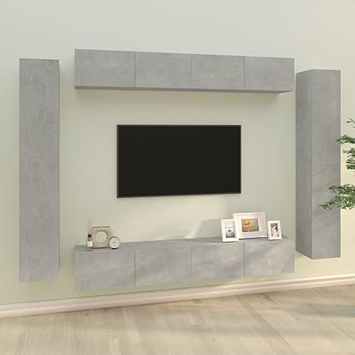 Insgesamt bietet das 8-TLG. TV-Schrank-Set Betongrau Holzwerkstoff,3114297 eine praktische und ästhetische Lösung für die Aufbewahrung und Präsentation Ihrer Multimedia-Geräte im Wohnzimmer. Mit seinem modernen Design, der hochwertigen Verarbeitung und der vielseitigen Einsatzmöglichkeiten ist es eine ideale Ergänzung für jede moderne Wohnzimmerausstattung.