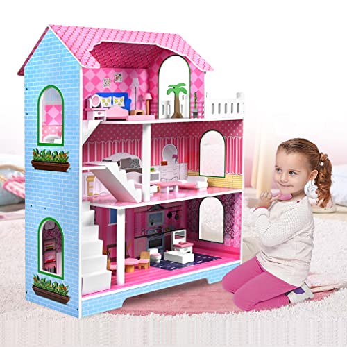 ACXIN Puppenhaus Holz Dollhouse Barbie Haus Große Spielset Barbie Puppenhaus DIY Puppenhaus Playmobil Haus Puppenvilla mit Möbel und Zubehör ist das ideale Spielzeug für Mädchen und Jungen, die gerne kreativ spielen und ihrer Fantasie freien Lauf lassen möchten. Dieses hochwertige Puppenhaus aus Holz bietet stundenlangen Spielspaß und fördert die motorischen Fähigkeiten sowie die soziale Interaktion der Kinder.