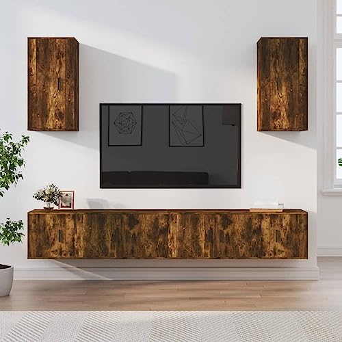 AJJHUUKI Home Outdoor Others bietet mit seinem 6-teiligen TV-Schrank-Set aus geräucherter Eiche eine hochwertige und stilvolle Lösung für die Aufbewahrung und Präsentation von TV-Geräten und Multimedia-Equipment. Das Set besteht aus robustem Holzwerkstoff, der für Langlebigkeit und Stabilität sorgt. Die geräucherte Eiche verleiht dem Schrank-Set einen edlen und zeitlosen Look, der sich nahtlos in jeden Wohnraum einfügt.