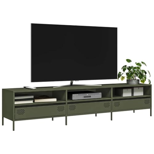 Der AJJHUUKI Outdoor-Möbel-TV-Schrank in Olivgrün ist ein elegantes und praktisches Möbelstück, das speziell für den Einsatz im Freien konzipiert wurde. Mit seinen Maßen von 202x39x43,5 cm bietet er ausreichend Platz für einen Fernseher sowie zusätzliche Ablageflächen für Zubehör und Dekoration.