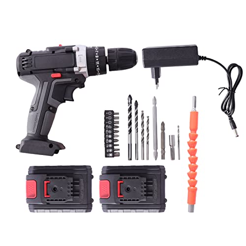 Das Set enthält auch ein Ladegerät, um die Batterien des Akkuschraubers schnell und einfach aufzuladen. Durch die mitgelieferten zwei Batterien haben Sie immer eine Reserve zur Hand, um unterbrechungsfrei arbeiten zu können. Die elektrische Hammerbohrmaschine ermöglicht es Ihnen, auch in härteren Materialien wie Beton oder Stein zu bohren, was mit einem herkömmlichen Schraubendreher nicht möglich wäre.