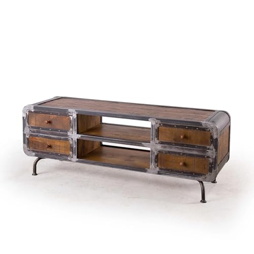 Das Mango-Holz verleiht dem TV-Schrank eine warme und natürliche Optik, die jedes Wohnzimmer aufwertet. Durch die Verwendung von massivem Holz ist der TV-Schrank besonders langlebig und stabil. Das Metallgestell sorgt für zusätzliche Stabilität und verleiht dem Möbelstück eine moderne Note.