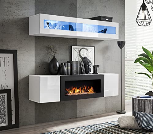 Das ASM Fly N Wand-Set ist eine elegante und praktische Lösung für die Aufbewahrung von TV-Geräten und anderen Gegenständen in Ihrem Wohnzimmer. Dieses Set besteht aus einer LED-Wandaufbewahrung und einem TV-Schrank, beide in einem stilvollen weißen Design gehalten.