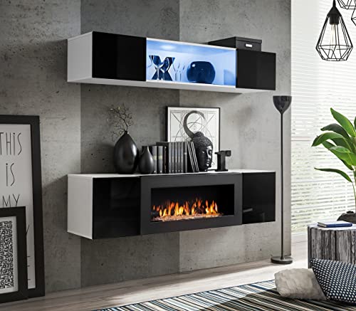 Das Set besteht aus einer LED-Wandaufbewahrung und einem TV-Schrank, die beide in einem eleganten und zeitlosen Design gehalten sind. Die Kombination von Weiß und Schwarz verleiht dem Set eine schlichte Eleganz, die sich nahtlos in jede Einrichtung einfügt. Die hochglänzende Oberfläche verleiht den Möbeln zudem einen edlen Touch und sorgt dafür, dass sie in jedem Raum zum Blickfang werden.
