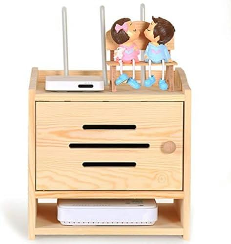 Die Box ist aus hochwertigem Holz gefertigt und in einem natürlichen Farbton erhältlich, der zu verschiedenen Einrichtungsstilen passt. Mit den Maßen von 30 23 30,5cm bietet die Aufbewahrungsbox ausreichend Platz für Ihren WLAN-Router, TV-Box, Set-Top-Box und andere Zubehörteile. Dank der offenen Konstruktion können Sie problemlos auf Ihre Geräte zugreifen und Kabel anschließen, ohne die Box öffnen zu müssen.