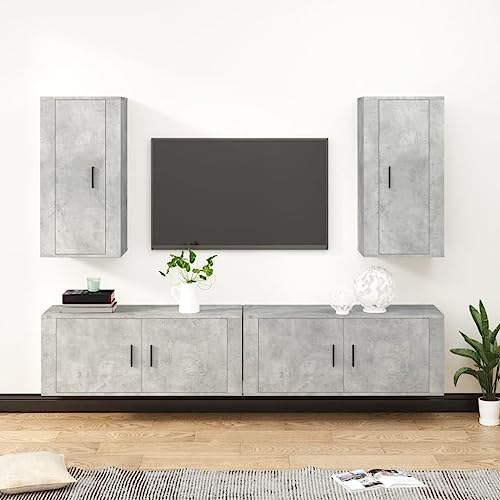 Insgesamt ist das AUUIJKJF Home Outdoor Others 4-teilige TV-Schrank-Set in Beton Grau Holzwerkstoff eine hervorragende Wahl für alle, die auf der Suche nach einer stilvollen und funktionalen Lösung für ihren Entertainmentbereich sind. Mit diesem Set können Sie Ihren Wohnraum aufwerten und gleichzeitig für Ordnung und Übersichtlichkeit sorgen. Gönnen Sie sich dieses hochwertige Möbelstück und genießen Sie entspannte Stunden vor dem Fernseher in einer gemütlichen und ansprechenden Umgebung.