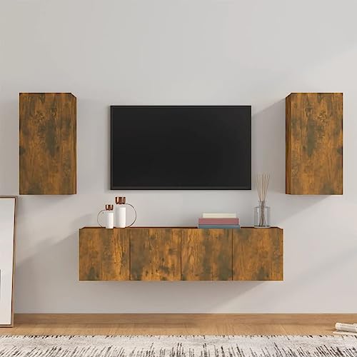 Das 4-teilige TV-Schrank-Set von AUUIJKJF Home Outdoor Others in geräucherter Eiche ist ein hochwertiges Möbelstück aus Holzwerkstoff, das sich ideal für die Aufbewahrung und Präsentation von Fernsehgeräten und Multimedia-Equipment eignet. Mit seinem modernen Design und der hochwertigen Verarbeitung ist dieses TV-Schrank-Set nicht nur funktional, sondern auch ein echter Blickfang in jedem Wohnzimmer.