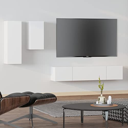 Das AUUIJKJF Home Outdoor Others 4-teilige TV-Schrank-Set ist eine hochwertige und stilvolle Lösung für alle, die ihren Wohnraum mit einem modernen und funktionalen Möbelstück aufwerten möchten. Dieses Set besteht aus einem TV-Schrank, einem Lowboard, einem Regal und einem Wandregal, alle in einem eleganten weiß lackierten Holzdesign.