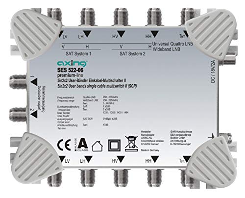 Der Axing SES 522-06 SAT Einkabel-Lösung Multischalter besteht aus hochwertigem Metall, was für eine lange Lebensdauer und eine stabile Verbindung sorgt. Das Gerät ist einfach zu installieren und zu bedienen, was es sowohl für professionelle Installateure als auch für Heimwerker geeignet macht.