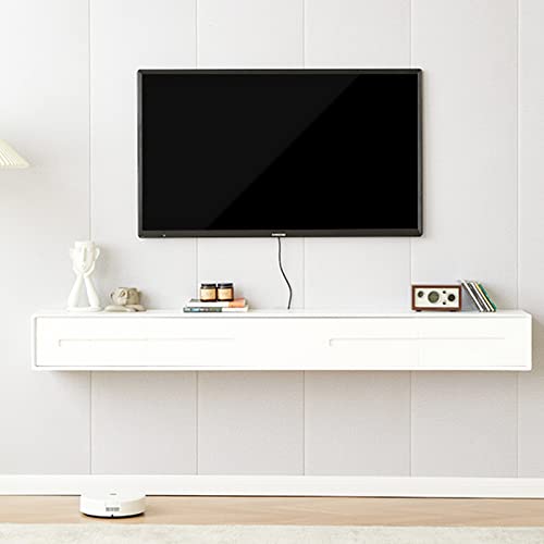 Das schwebende TV-Ständerregal verfügt über zwei geräumige Schubladen, in denen Sie DVDs, Fernbedienungen und andere kleine Gegenstände ordentlich verstauen können. Die Schubladen sind mit eleganten Griffen ausgestattet, die das Öffnen und Schließen erleichtern und das Gesamtbild der TV-Einheit abrunden.