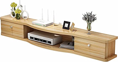 Der wandmontierte TV-Schrank verfügt über mehrere offene Regale und Schubladen, die es Ihnen ermöglichen, Ihre Geräte organisiert und leicht zugänglich zu halten. Die Regale sind ideal für die Aufbewahrung von DVDs, CDs, Büchern und anderen Medien, während die Schubladen Platz für Kabel, Fernbedienungen und andere Zubehörteile bieten. Mit diesem Multimedia-Aufbewahrungsregal können Sie Ihr Wohnzimmer ordentlich und aufgeräumt halten, ohne auf Stil und Funktionalität zu verzichten.