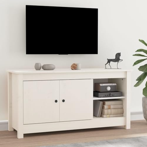 Der CFODOJ TV-Schrank in Weiß aus Massivholz Kiefer ist ein zeitloses Möbelstück, das in jeden Wohnraum passt und für eine gemütliche Atmosphäre sorgt. Mit seinen Maßen von 103×36,5×52 cm bietet er ausreichend Stauraum für Fernseher, Receiver, DVDs und andere Multimedia-Geräte. Dank seines robusten Materials ist der TV-Schrank besonders langlebig und strapazierfähig.