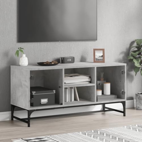Dieser TV-Schrank misst 102x37x50 cm und bietet ausreichend Platz für Ihren Fernseher, DVD-Player, Spielkonsolen und andere Unterhaltungselektronik. Die Betongrau-Farbe verleiht dem Schrank eine moderne und schicke Optik, die zu einer Vielzahl von Einrichtungsstilen passt. Die Glastüren sorgen nicht nur für einen eleganten Look, sondern schützen auch Ihre Geräte vor Staub und Beschädigungen.
