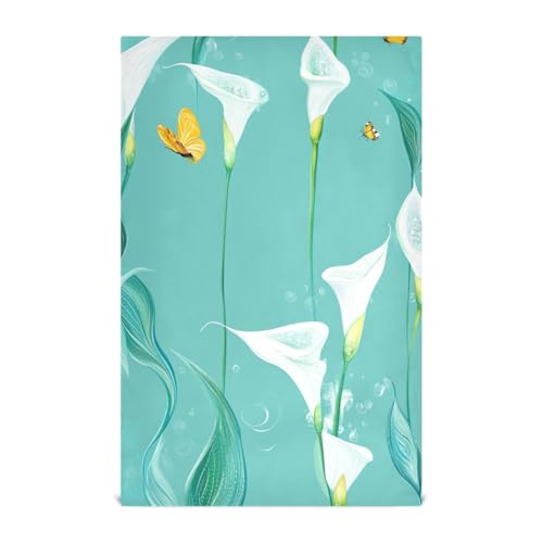 EtherSpher Chic Calla Lilie türkise Blumen dekorative Geschirrtücher sind nicht nur praktisch, sondern auch ein echter Hingucker in Ihrer Küche. Diese saugfähigen Baumwolle Frottee Küchentücher sind nicht nur hochwertig verarbeitet, sondern auch besonders dekorativ. Mit ihren türkisen Blumenmotiven bringen sie Frische und Farbe in Ihre Küche und sorgen für eine angenehme Atmosphäre beim Kochen und Abwaschen.