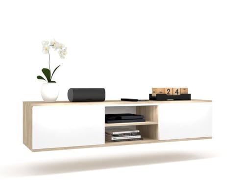 Dank der Wandmontage sparen Sie nicht nur Platz, sondern schaffen auch eine moderne und aufgeräumte Optik in Ihrem Wohnzimmer. Das Lowboard bietet zudem genügend Stauraum für DVDs, Spiele und weitere Utensilien. Die offenen Fächer sind ideal für Ihre Multimedia-Geräte wie Receiver oder Spielekonsolen, während die geschlossenen Fächer Platz für weitere Utensilien bieten.