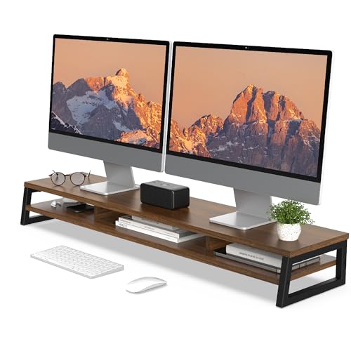 Der Fenge Dual Monitorständer Riser ist eine großartige Lösung, um Ihren Arbeitsplatz zu organisieren und Ihren Komfort zu maximieren. Mit einer Größe von 108cm bietet dieser Computer Bildschirmständer genügend Platz für zwei Monitore, Laptops, Faxgeräte, Drucker oder sogar einen Fernseher. Der Schreibtisch Organizer kann bis zu 45KG tragen, was bedeutet, dass Sie sich keine Sorgen um die Stabilität machen müssen.