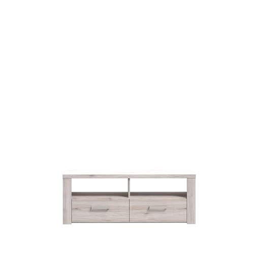 Wenn Sie auf der Suche nach einem TV-Unterschrank sind, der nicht nur funktional ist, sondern auch optisch ansprechend, dann ist der FORTE Portland TV-Unterschrank mit 2 Schubladen in der Sandeiche-Optik die ideale Wahl für Sie. Gönnen Sie sich dieses hochwertige Möbelstück und genießen Sie die Vorzüge eines gut organisierten und stilvollen Wohnzimmers.
