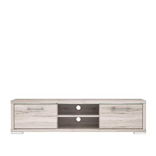 Der FORTE Stay TV-Unterschrank überzeugt nicht nur durch sein ansprechendes Design und seine Funktionalität, sondern auch durch seine hochwertige Verarbeitung. Die Sandeiche-Optik verleiht dem Möbelstück eine natürliche und edle Ausstrahlung, die sich harmonisch in Ihr Wohnambiente einfügt. Die klare Linienführung und die schlichte Formgebung sorgen dafür, dass der TV-Unterschrank zeitlos und elegant wirkt.