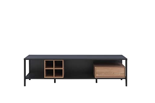 Der TV-Schrank bietet ausreichend Stauraum für Ihre Multimedia-Geräte, DVDs, Bücher und andere Wohnaccessoires. Mit insgesamt vier offenen Fächern und zwei Schubladen können Sie Ihre Dinge ordentlich und übersichtlich verstauen. Die offenen Fächer eignen sich perfekt für Ihre Geräte wie DVD-Player, Spielkonsolen oder Receiver, während die Schubladen Platz für kleinere Gegenstände bieten.