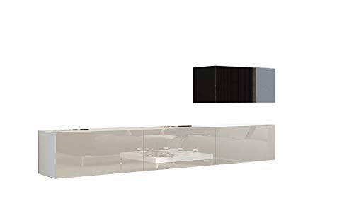 Die FURNITECH Wohnwand ist eine moderne und stilvolle Ergänzung für jedes Wohnzimmer. Mit ihrem zeitgemäßen Design und den integrierten LED-Lichtern in Schwarz ist sie ein echter Blickfang. Die Wohnwand ist hängend und bietet daher eine leichte und luftige Optik, die Ihr Wohnzimmer größer wirken lässt.