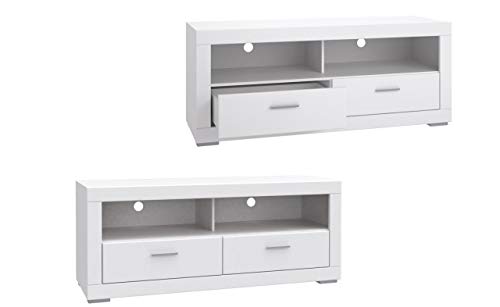 Der TV-Schrank ist in einem zeitlosen Weiß gehalten, was ihm ein edles und schlichtes Aussehen verleiht. Er passt somit zu nahezu jeder Einrichtung und lässt sich optimal kombinieren. Die klare Linienführung und das schlichte Design machen ihn zu einem zeitlosen Möbelstück, das auch noch in vielen Jahren modern und ansprechend wirkt.