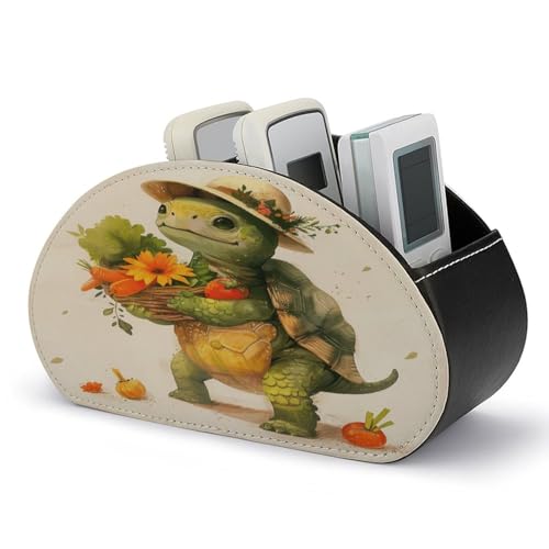 FZQVSWTX Fernbedienungshalter, Cartoon-Schildkröte, bedrucktes PU-Leder, Schreibtisch-Organizer mit 5 Fächern für Medien-Zubehör und Bürobedarf ist ein praktisches und niedliches Accessoire für jeden Schreibtisch. Mit diesem Organizer können Sie Ihre Fernbedienungen, Stifte, Notizblöcke und andere Büroartikel ordentlich und griffbereit aufbewahren.