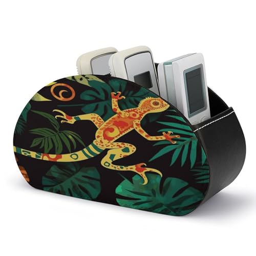 Der FZQVSWTX Fernbedienungshalter ist ein praktisches und stylisches Accessoire für Ihr Zuhause oder Büro. Dieser Fernbedienungs-Caddy ist mit einem trendigen Gecko und tropischen Blättern bedruckt, was ihm einen einzigartigen und ansprechenden Look verleiht. Das Material des Fernbedienungshalters besteht aus hochwertigem PU-Leder, das strapazierfähig und langlebig ist.