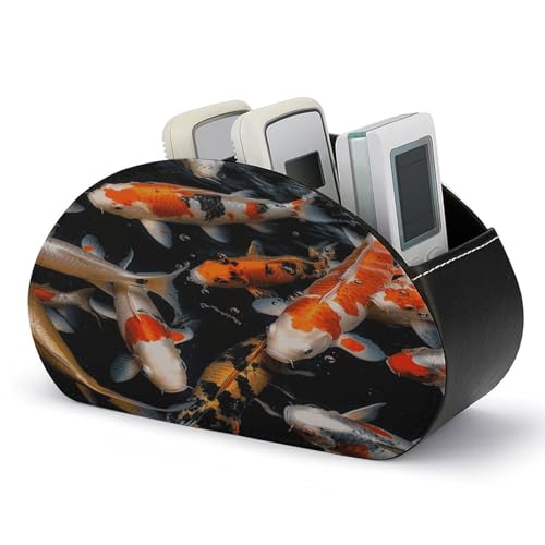 Der FZQVSWTX Fernbedienungshalter ist ein praktischer Schreibtisch-Organizer, der nicht nur für die Aufbewahrung von Fernbedienungen, sondern auch für andere Medien-Zubehör und Bürobedarf geeignet ist. Dieser Organizer ist mit 5 Fächern ausgestattet, die aus bedrucktem PU-Leder gefertigt sind. Das Design des Organizers ist von japanischen Karpfenfischen inspiriert, die auch als Koi-Karpfen bekannt sind.