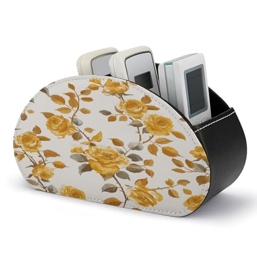 Der FZQVSWTX Fernbedienungshalter in senfgelber Rose ist ein praktischer Schreibtisch-Organizer, der aus bedrucktem PU-Leder gefertigt ist und über 5 Fächer für Medien-Zubehör und Bürobedarf verfügt. Dieser stilvolle und funktionale Organizer ist die ideale Lösung, um Ihre Fernbedienungen, Stifte, Notizblöcke und andere Utensilien ordentlich und griffbereit aufzubewahren.