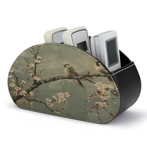 Der FZQVSWTX Fernbedienungshalter mit Vogel auf blühendem Baum ist ein praktischer und dekorativer Organizer für Ihren Schreibtisch oder Wohnzimmer. Dieser bedruckte PU-Leder-Fernbedienungs-Caddy verfügt über 5 Fächer, die Ihnen helfen, Ihre Medien-Zubehör und Bürobedarf ordentlich und griffbereit zu halten.