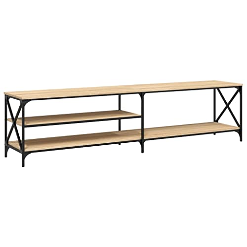 Der TV-Schrank ist aus hochwertigem Holzwerkstoff gefertigt und mit Metallelementen in Sonoma-Eiche verziert. Dies verleiht dem Schrank eine rustikale und moderne Optik, die zu verschiedenen Einrichtungsstilen passt. Die braune Eiche sorgt für eine warme und gemütliche Atmosphäre in Ihrem Wohnzimmer.
