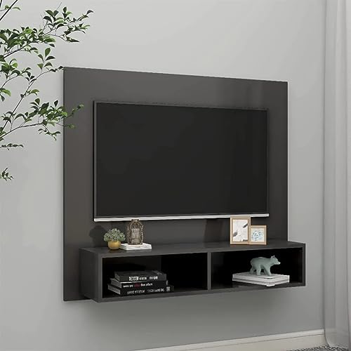 Der GaRcan Wand-TV-Schrank in Hochglanzgrau ist ein stilvoller und moderner Möbelstück, das sowohl funktional als auch ästhetisch ansprechend ist. Mit seinen Maßen von 102 x 23,5 x 90 cm bietet er ausreichend Platz für Ihren Fernseher, Multimedia-Geräte und Zubehör. Hergestellt aus hochwertigem Holzwerkstoff, ist dieser TV-Schrank langlebig und robust.