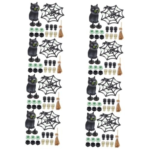 Die Garneck 8 Sets Halloween Kunststoff Miniaturen enthalten verschiedene Miniaturen, darunter Spinnen, Skelette, Kürbisse und Hexen. Diese Miniaturen sind detailreich gestaltet und sorgen für eine gruselige Atmosphäre in Ihrem Puppenhaus oder Halloween-Dekoration.