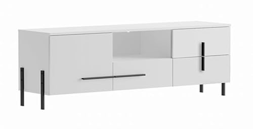 Das Generic Lowboard Justine Schrank Weiß TV Schrank Wohnzimmer (Weiss), 1D2K1S ist ein eleganter und moderner TV-Schrank, der sich perfekt in jedes Wohnzimmer einfügt. Mit seiner schlichten weißen Farbe und seinem zeitlosen Design ist er ein echter Blickfang und verleiht jedem Raum eine stilvolle Note.