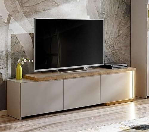 Die hochwertige Verarbeitung des Sideboards sorgt für eine lange Lebensdauer und macht es zu einem langlebigen Möbelstück für Ihr Zuhause. Die Kombination aus Kaschmir und Natur Grand Eiche verleiht dem Sideboard eine zeitlose Eleganz, die sich in jedes Wohnzimmerinterieur harmonisch einfügt.