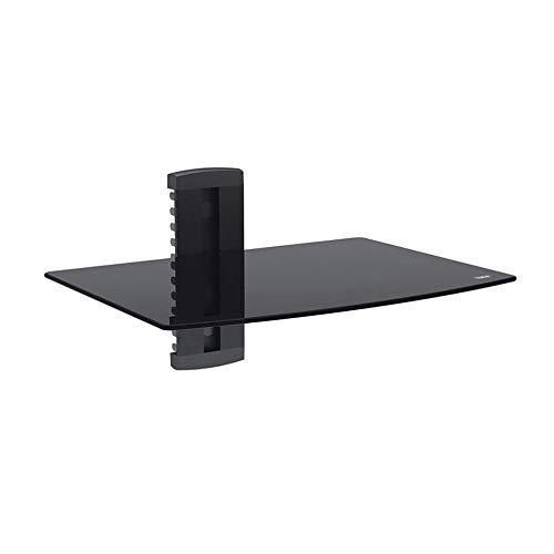 Das schwebende schwarze Regal mit flacher schwarzer Wandhalterung und verstärktem gehärtetem schwarzen Glas ist die perfekte Lösung für die Aufbewahrung und Präsentation von verschiedenen elektronischen Geräten in Ihrem Wohnzimmer oder Unterhaltungsbereich. Mit diesem stilvollen und funktionalen Regal können Sie Ihren DVD-Player, Virgin Box, Spielkonsolen, TV-Zubehör, Lautsprecher und mehr sicher und platzsparend unterbringen.