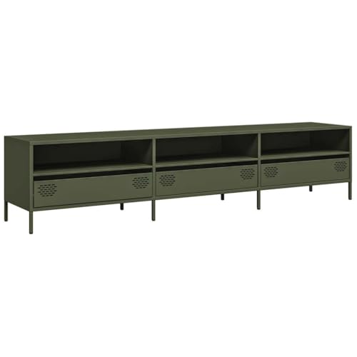 Hergestellt aus kaltgewalztem Stahl ist der TV-Schrank besonders robust und langlebig. Die olivgrüne Farbe verleiht dem Möbelstück eine frische und moderne Optik, die sich wunderbar in verschiedene Einrichtungsstile integrieren lässt. Die hochwertige Verarbeitung und die sorgfältig ausgewählten Materialien machen den Generico Kangqiling851350 TV-Schrank zu einem echten Blickfang in Ihrem Wohnzimmer.