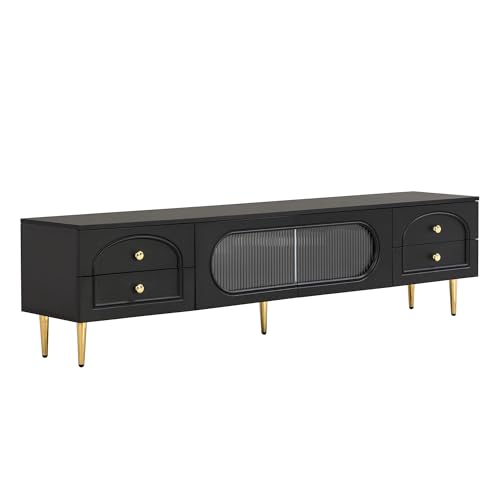 Der TV-Schrank besteht aus hochwertigem Glas, das nicht nur langlebig ist, sondern auch leicht zu reinigen. Die strukturierten Schubladen bieten zusätzlichen Stauraum für DVDs, Fernbedienungen und andere Kleinigkeiten, die Sie gerne griffbereit haben möchten. Durch die glatte Oberfläche des Schranks wirkt er besonders edel und modern.