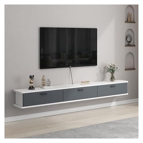 Ein generisch schwebender TV-Ständer ist eine moderne und platzsparende Lösung für die Aufbewahrung von Unterhaltungselektronik in Ihrem Zuhause. Dieser wandmontierte Entertainment-Center und Schrankregal bietet nicht nur eine stilvolle Möglichkeit, Ihren Fernseher zu präsentieren, sondern auch ausreichend Stauraum für DVDs, Spielekonsolen, Fernbedienungen und andere Medienzubehörteile.