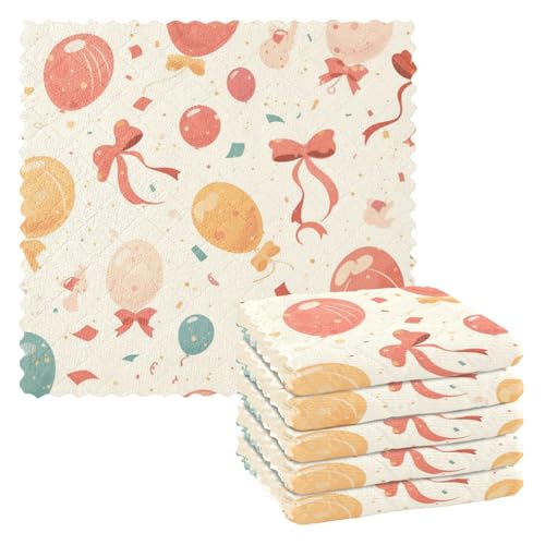 Geschirrtücher sind ein unerlässliches Zubehör in der Küche, um Geschirr abzutrocknen, Oberflächen zu reinigen oder Lebensmittel abzudecken. Mit niedlichem buntem Luftballon-Schleifen-Design sind diese Geschirrtücher nicht nur praktisch, sondern auch ein echter Blickfang in Ihrer Küche.
