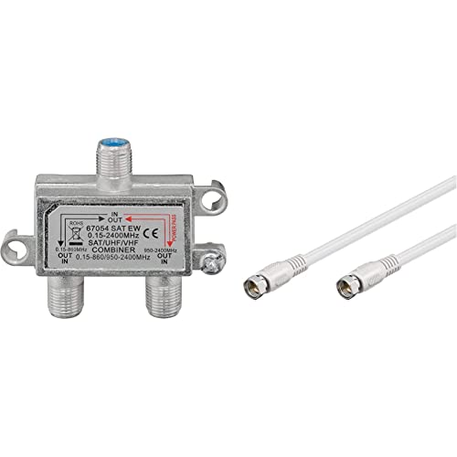 Die goobay 67054 SAT TV Einschleuseweiche Sat/Terrestrisch & 60722 Sat Anschlusskabel sind zwei hochwertige Produkte, die in jedem Satelliten- oder Antennenempfangssystem unverzichtbar sind. Die Einschleuseweiche ermöglicht es, sowohl Satellitensignale als auch terrestrische Signale über ein einziges Kabel zu übertragen, was eine effiziente und platzsparende Lösung darstellt. Das Sat Anschlusskabel hingegen sorgt für eine zuverlässige Verbindung zwischen Satellitenschüssel und Receiver und gewährleistet eine optimale Signalübertragung.