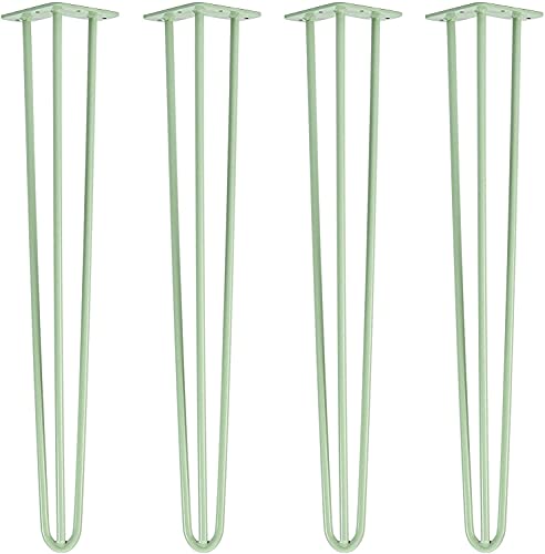 Die Hairpin Tischbeine sind in einem schönen Grün erhältlich und haben eine Höhe von 60 cm. Sie eignen sich perfekt für den Bau von Tischen, Schreibtischen, Konsolen und anderen Möbelstücken. Mit ihrer schlichten und dennoch eleganten Optik passen sie zu vielen verschiedenen Einrichtungsstilen und können jedem Raum eine stilvolle Note verleihen.