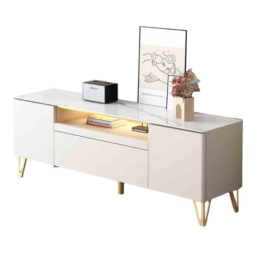 Der Fernsehschrank verfügt über offene Fächer, in denen Sie Ihre Multimedia-Geräte wie DVD-Player, Spielkonsolen oder Set-Top-Boxen unterbringen können. Die offenen Fächer ermöglichen eine gute Belüftung und bieten einfachen Zugriff auf Ihre Geräte. Die Schubladen und der zusätzliche Stauraum bieten Platz für DVDs, CDs, Bücher oder andere Gegenstände, die Sie gerne griffbereit haben möchten.