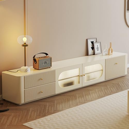 Der HOLGVE TV Schrank in Weiß ist ein stilvoller und funktionaler Fernsehtisch, der perfekt für Fernseher bis zu 55 Zoll geeignet ist. Mit seinen Maßen von 160 x 40 x 42 cm bietet dieser Entertainment-Center ausreichend Platz für Ihren Fernseher, Mediengeräte und andere Wohnzimmer- oder Schlafzimmerutensilien.