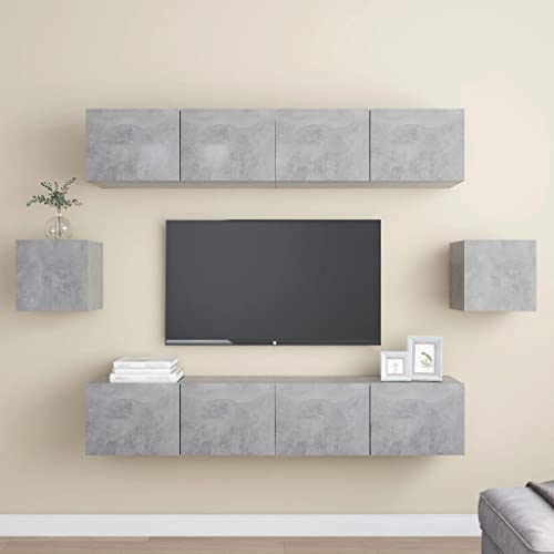Homgoday 6-TLG. TV-Schrank Hängeschrank TV Schrank Wohnwand TV Möbel Fernsehtisch TV Lowboard Wandregal Schrankwand für Wohnzimmer Betongrau Holzwerkstoff ist eine moderne und stilvolle Lösung für Ihr Wohnzimmer. Mit diesem Möbelstück können Sie Ihren Fernseher und andere Multimedia-Geräte elegant und platzsparend unterbringen.