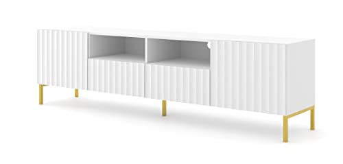 Homlando TV-Schrank Wave 200 cm 2D2S ist ein modernes und elegantes Möbelstück, das jeden Wohnraum aufwertet. Mit seinen gefrästen dekorierten MDF-Fronten und Metallbeinen strahlt dieser TV-Schrank eine zeitlose Eleganz aus. Das Lowboard bietet nicht nur Platz für Ihren Fernseher, sondern auch für andere elektronische Geräte und Dekorationsgegenstände.