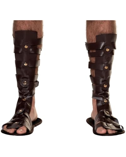 Ein beliebtes Modell sind die klassischen römischen Sandalen, die mit ihrem schlichten Design und der traditionellen Schnürung an der Wade perfekt zu einem authentischen Römer-Kostüm passen. Diese Sandalen sind in verschiedenen Farben erhältlich, von klassischem Braun bis hin zu edlem Schwarz, und lassen sich daher optimal an das jeweilige Kostüm anpassen.