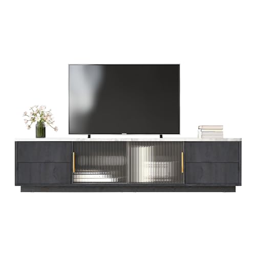Insgesamt ist der HYUB Modern TV-Schrank für unter 70-Zoll-Fernseher ein hochwertiges und praktisches Möbelstück, das sowohl optisch als auch funktional überzeugt. Mit seinem modernen Design, der marmorierten Tischplatte und dem großzügigen Stauraum ist er die ideale Ergänzung für Ihr Wohnzimmer und sorgt für einen aufgeräumten und stilvollen Look. Gönnen Sie sich diesen hochwertigen Fernsehschrank und bringen Sie Ordnung und Eleganz in Ihr Zuhause.